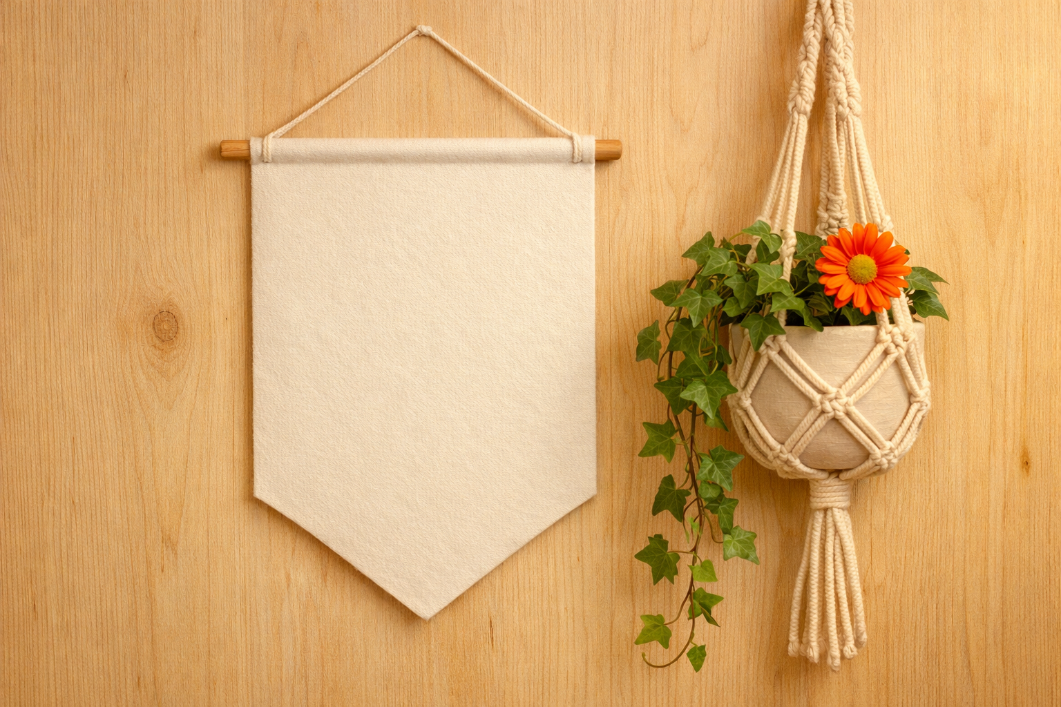 Minimalist Wall-mounted Banner and Macramé Planter Mockup