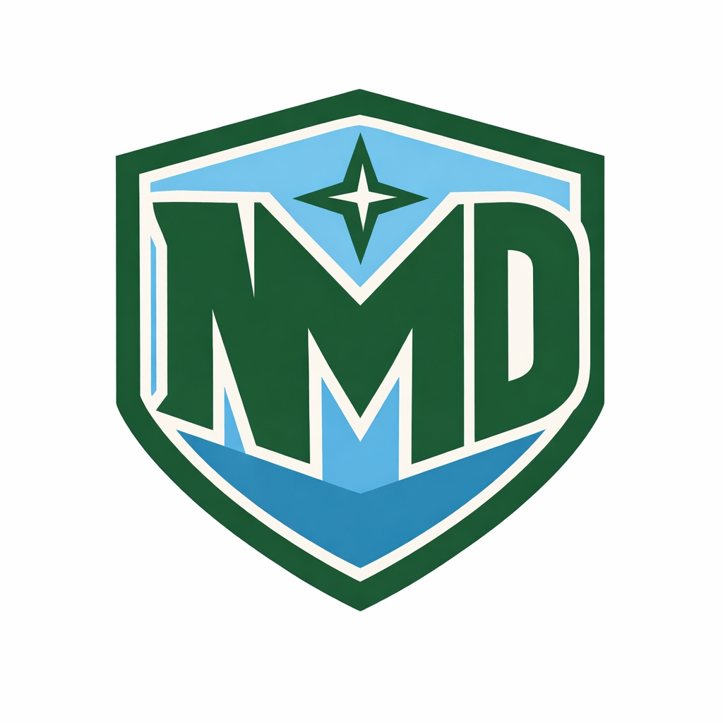 Modern Forest Green Shield Logo with MD Letters Sticker