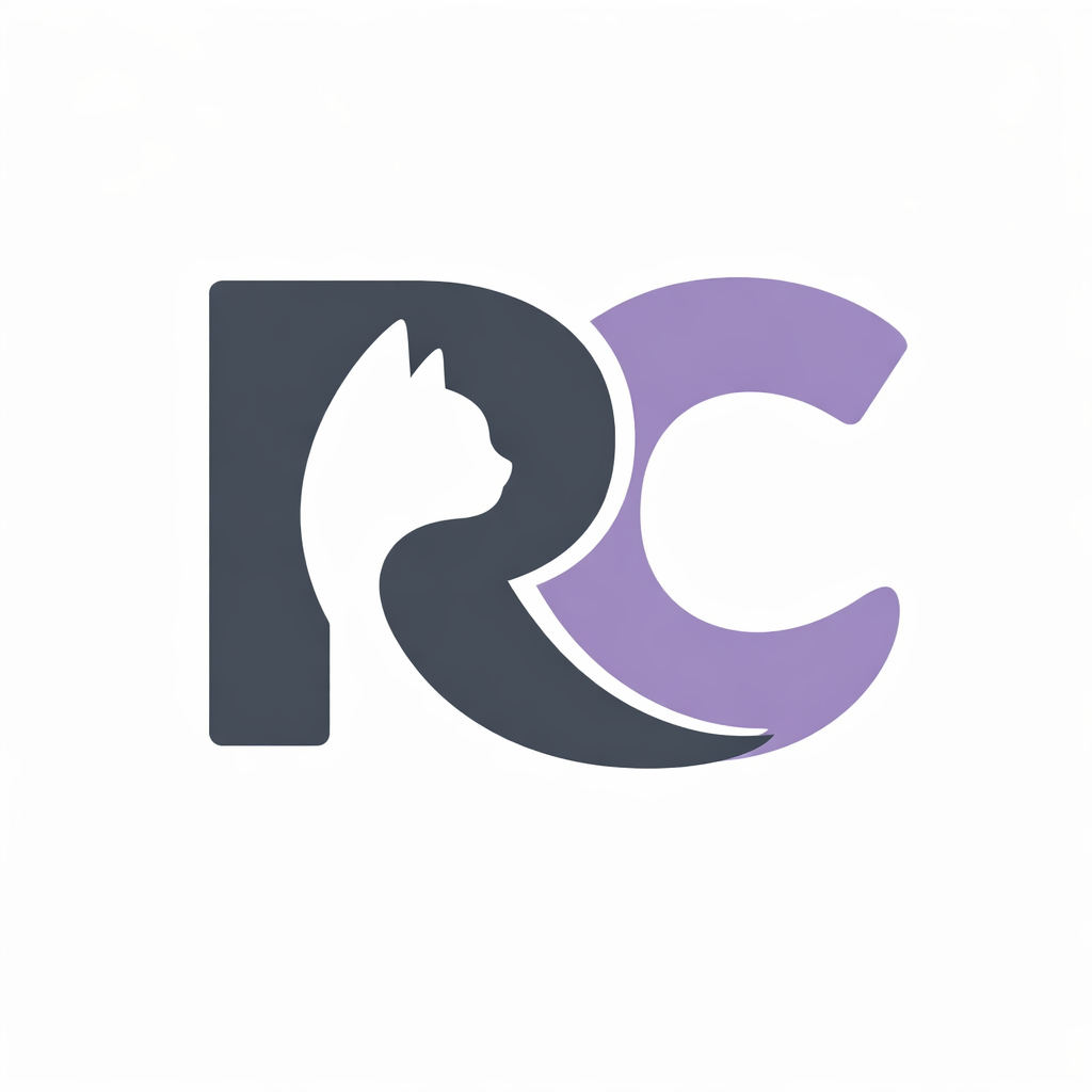 Modern RC Logo Design Featuring Cat Silhouette in Gray and Lavender Monogram