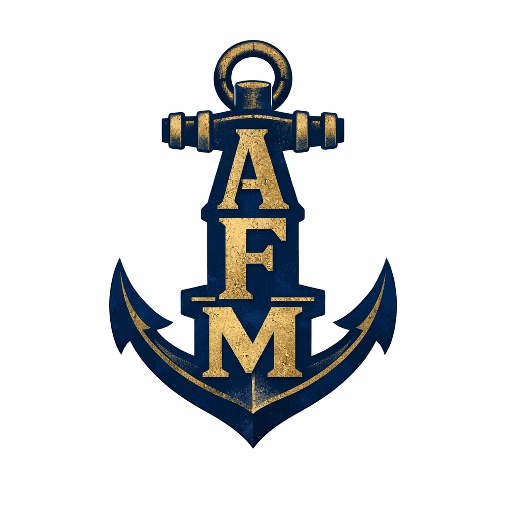 Minimalist Navy Blue Anchor and Oar Logo Design