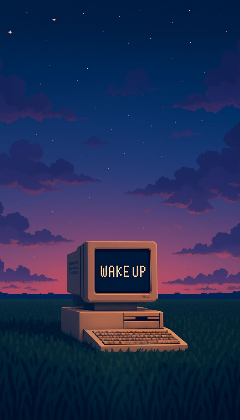 Nostalgic Pixel Art Computer and Twilight Sky Mobile Wallpaper