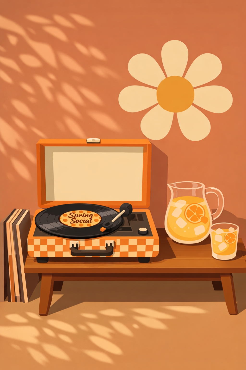 Nostalgic Vinyl Record Player and Lemonade Cozy Art