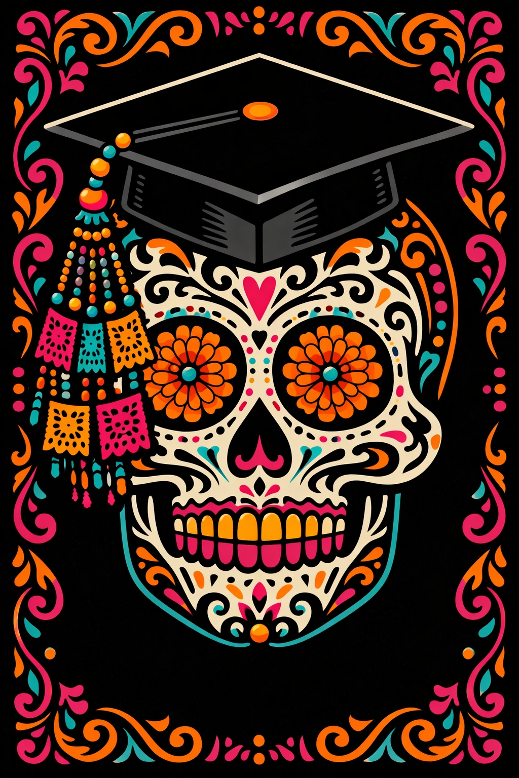 Vibrant Sugar Skull with Graduation Cap T-Shirt