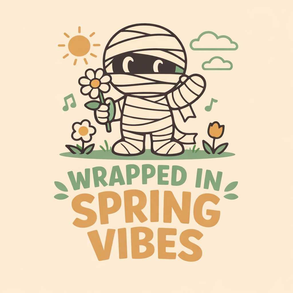 Cheerful Cartoon Mummy with Daisy and Spring Vibes Sticker