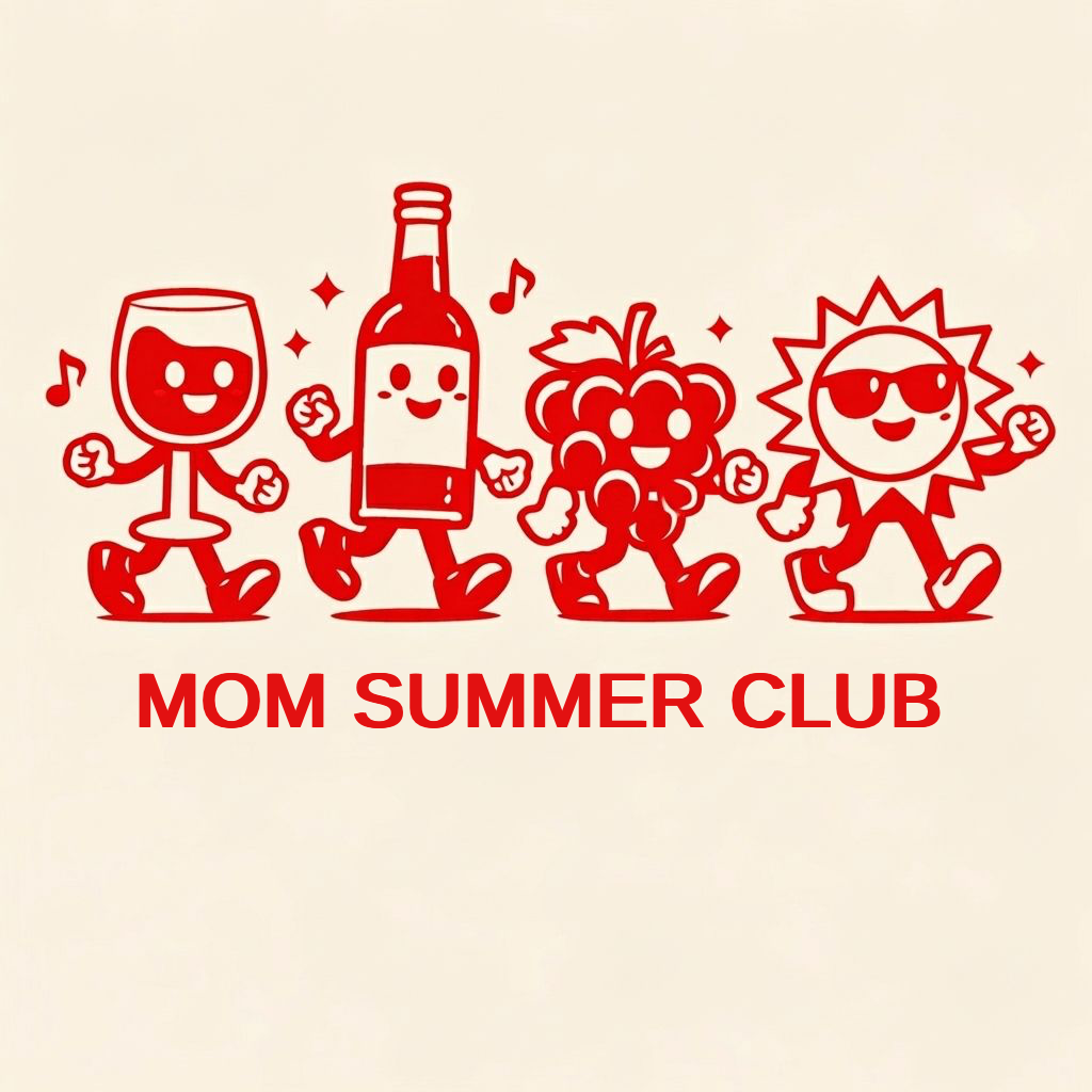 Playful Cartoon Wine Characters with MOM SUMMER CLUB Text T-Shirt