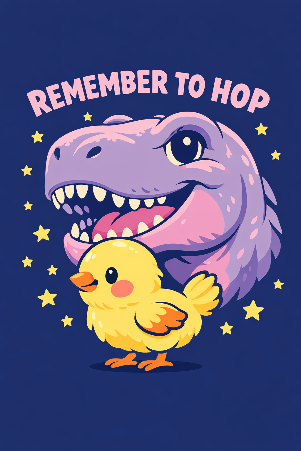 Playful Dinosaur and Chick 'Remember to Hop' Cartoon T-Shirt