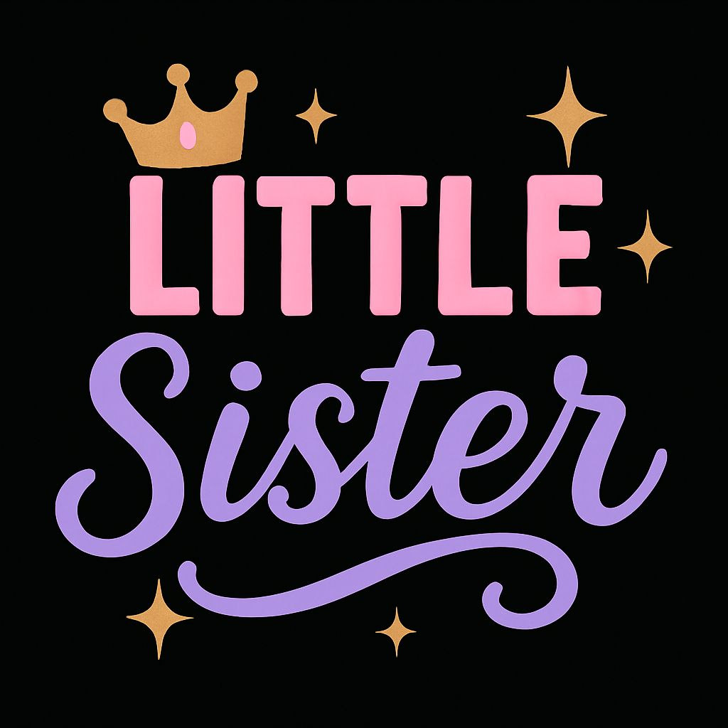 Playful Little Sister Typography with Crown and Stars T-Shirt