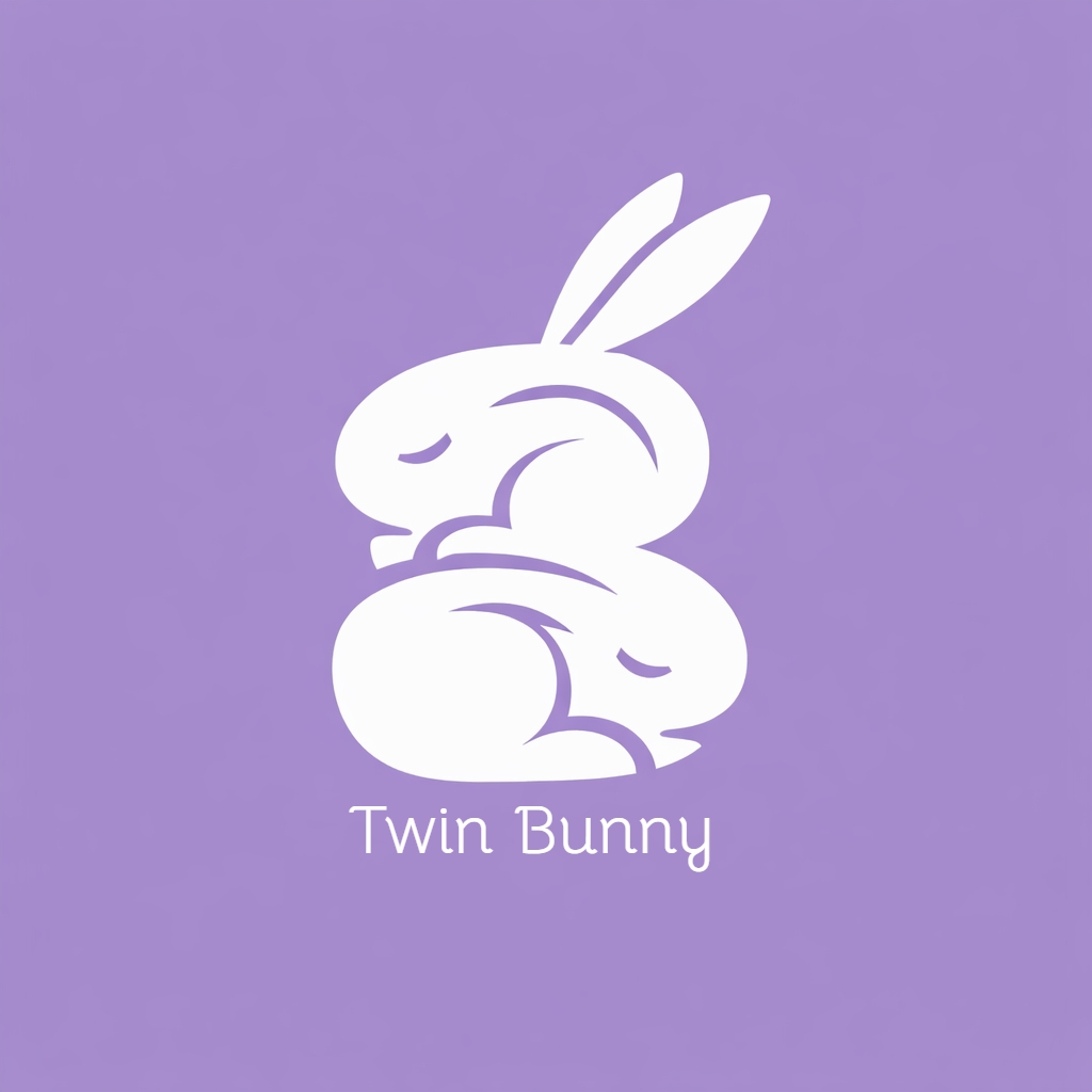 Minimalist Twin Bunny Silhouette Logo on Lavender Background