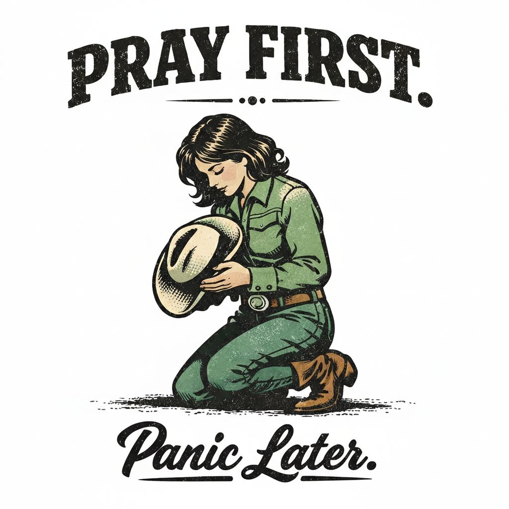 Vintage Prayer Illustration with 'Pray First' Text T-Shirt