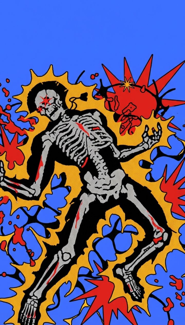 Neon Pink Skeleton Illustration in Edgy Modern Style Mobile Wallpaper