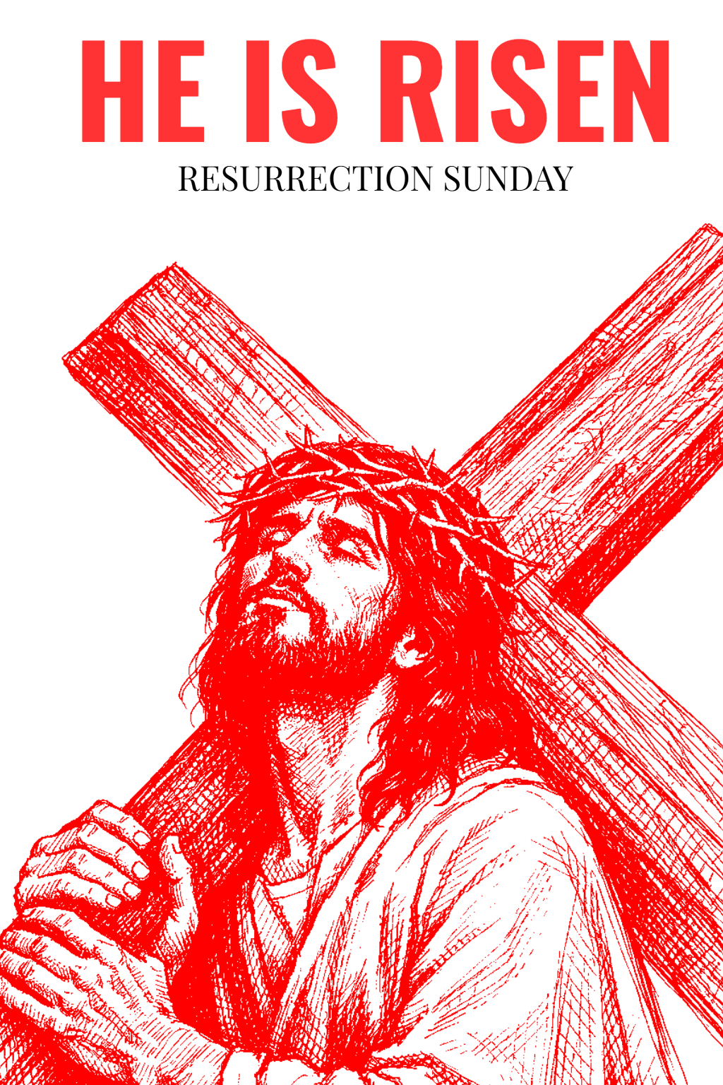 Red and White Jesus Carrying Cross Line Art Illustration Poster