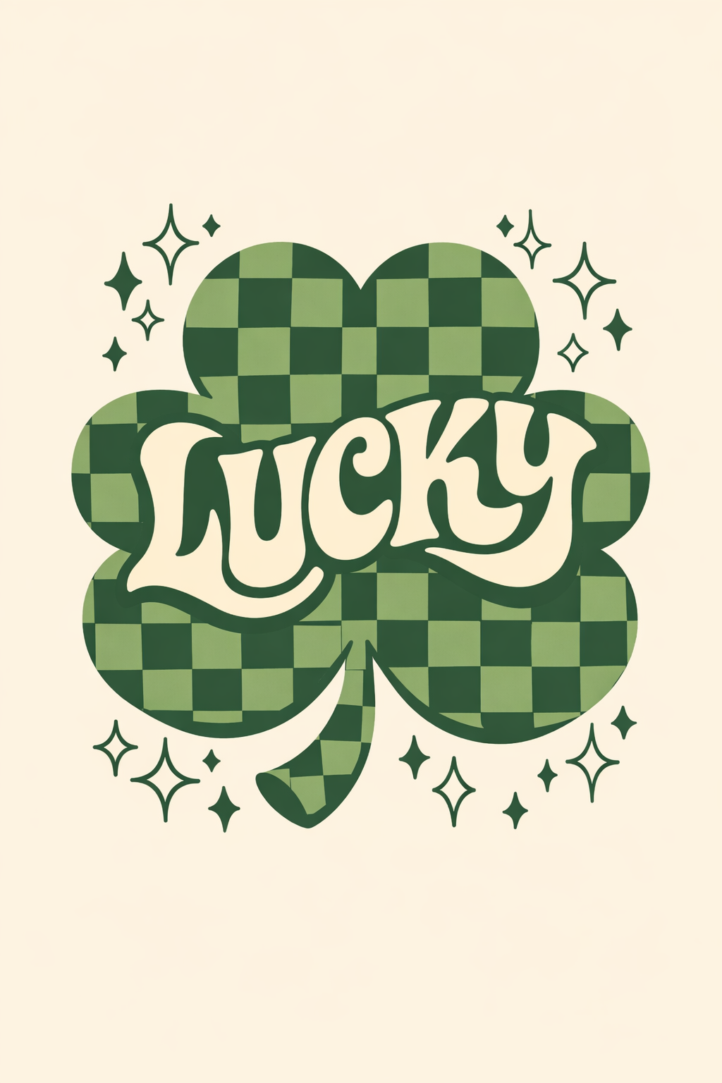 Vintage Bold Lucky Text with Clover Icon T-Shirt