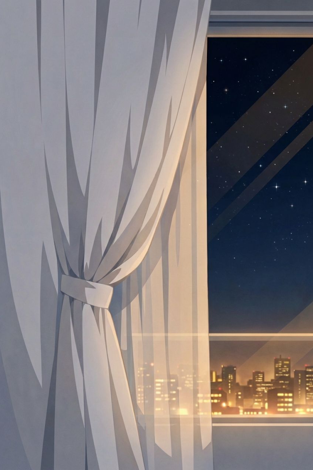 Serene Anime Nighttime Window View with Cityscape Mobile Wallpaper