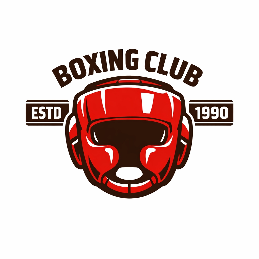 Bold Red Boxing Club Logo Design with Modern Helmet Elements