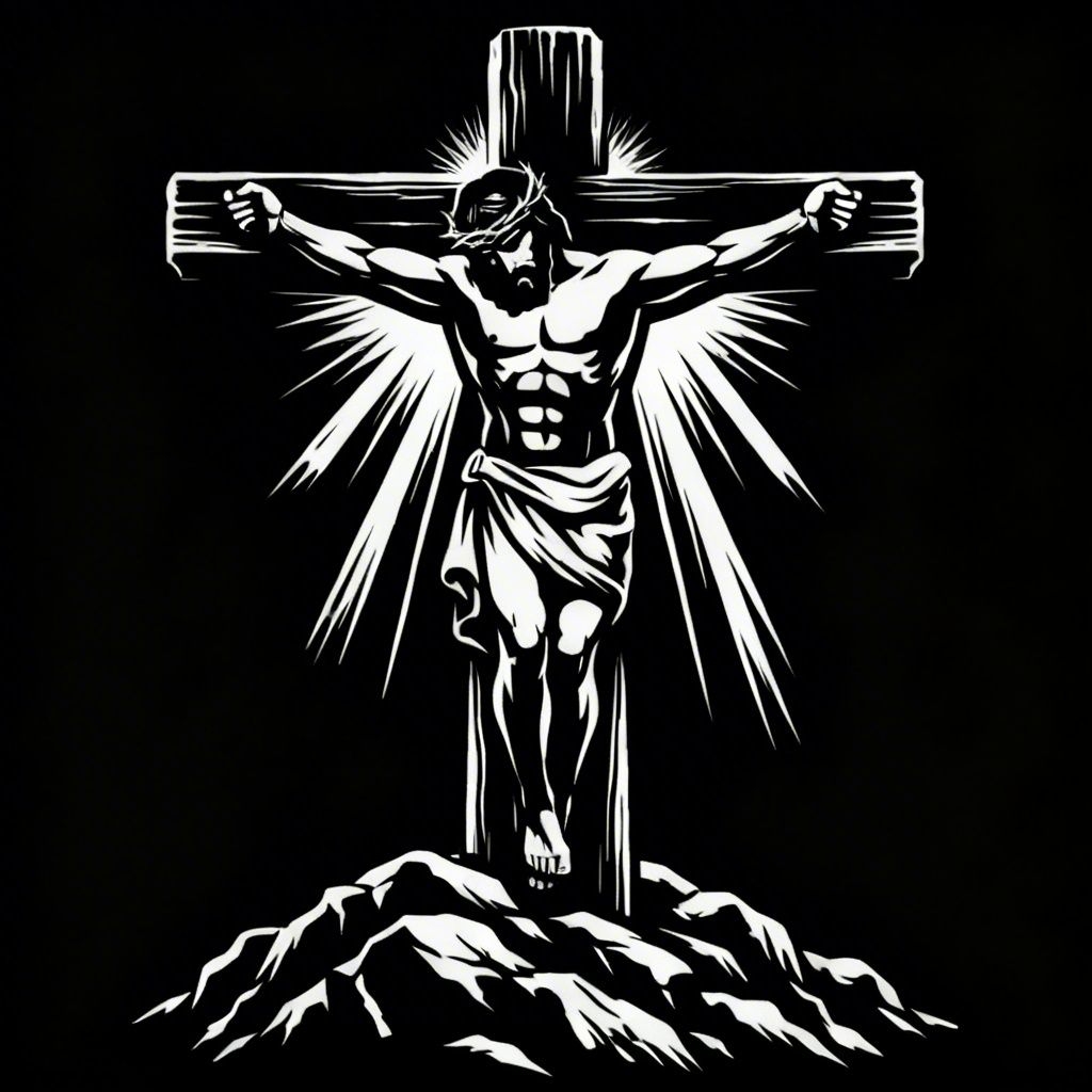 Powerful Black and White Jesus Christ on Cross Illustration T-shirt