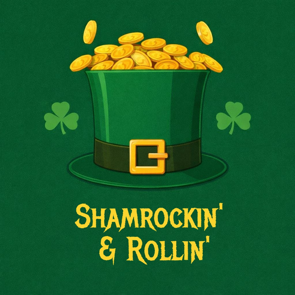Festive St. Patrick's Day Graphic with Shamrocks and Top Hat Social Media Post