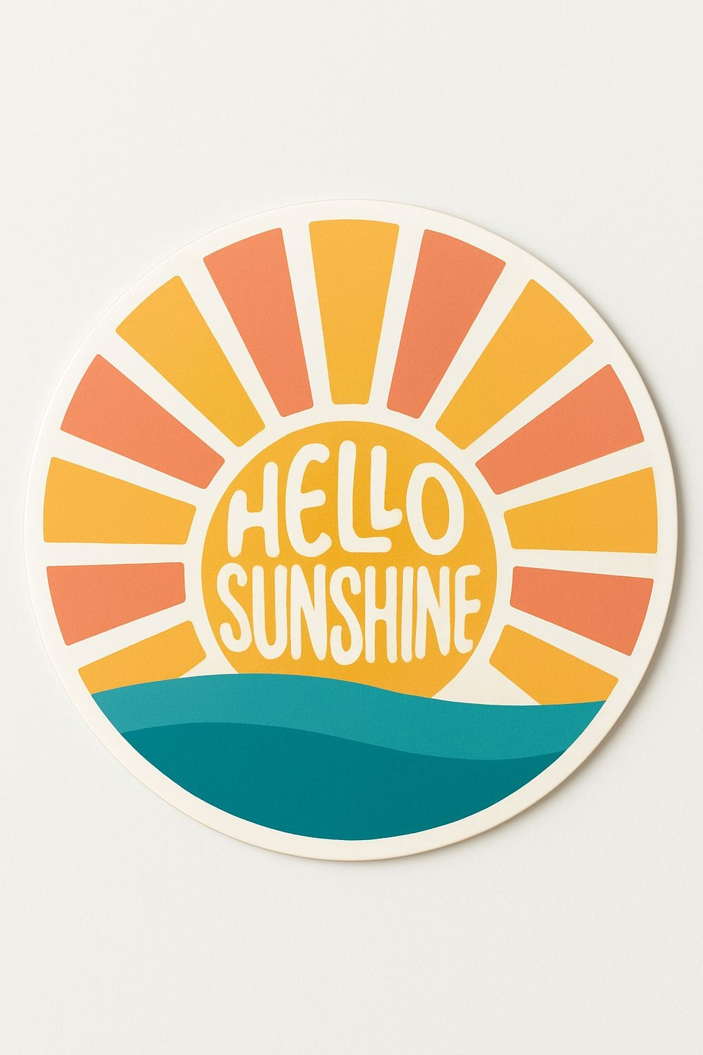 Cheerful Sunrise with Rainbow and Waves Cartoon Sticker