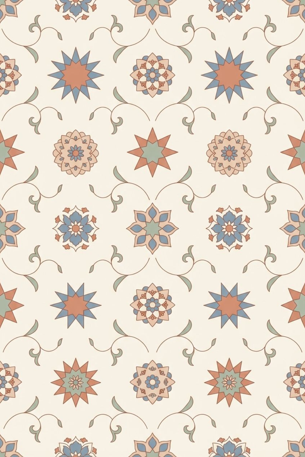 Stylized Flower Geometric Grid Pattern in Soft Colors Seamless Pattern