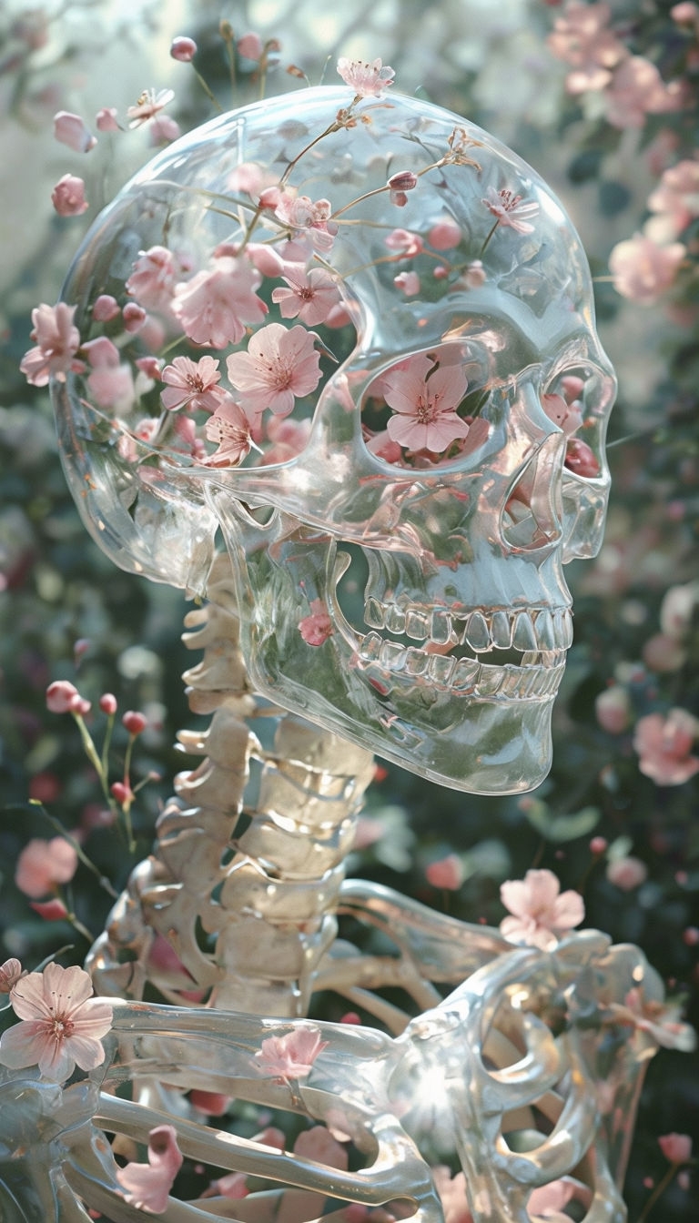 Translucent Skull with Blooming Flowers Surreal Art Print