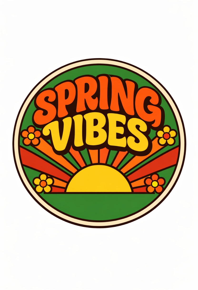 Retro-Inspired Vintage Floral Sun Motif Art Design