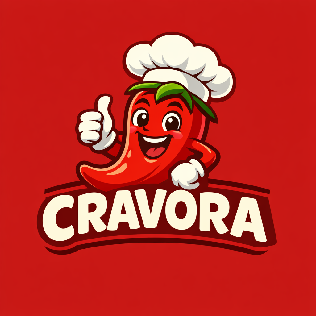 Vibrant Cartoon Chili Pepper Character Logo Design for Cravora