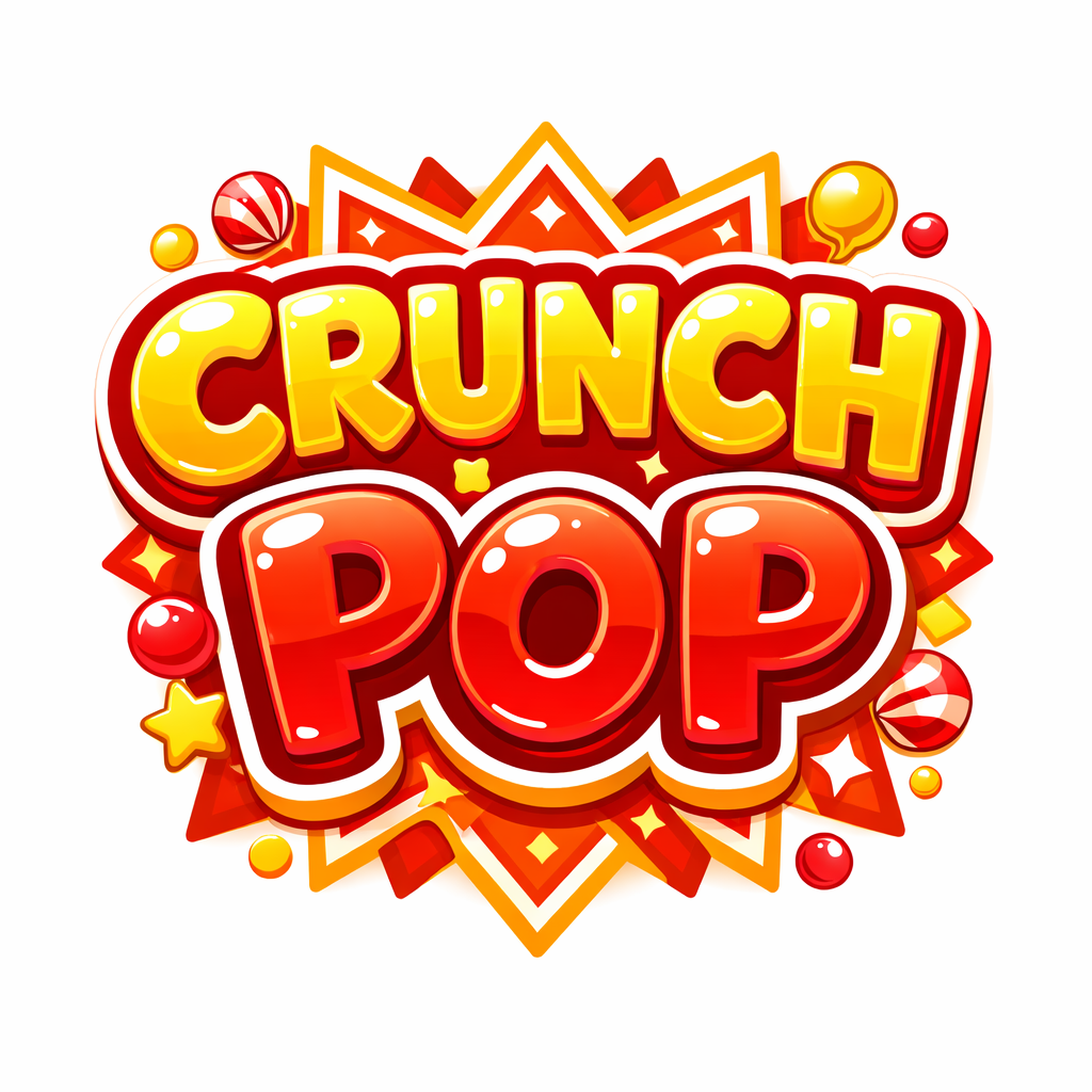Vibrant Cartoon 'CRUNCH POP' Logo with Glossy 3D Letters