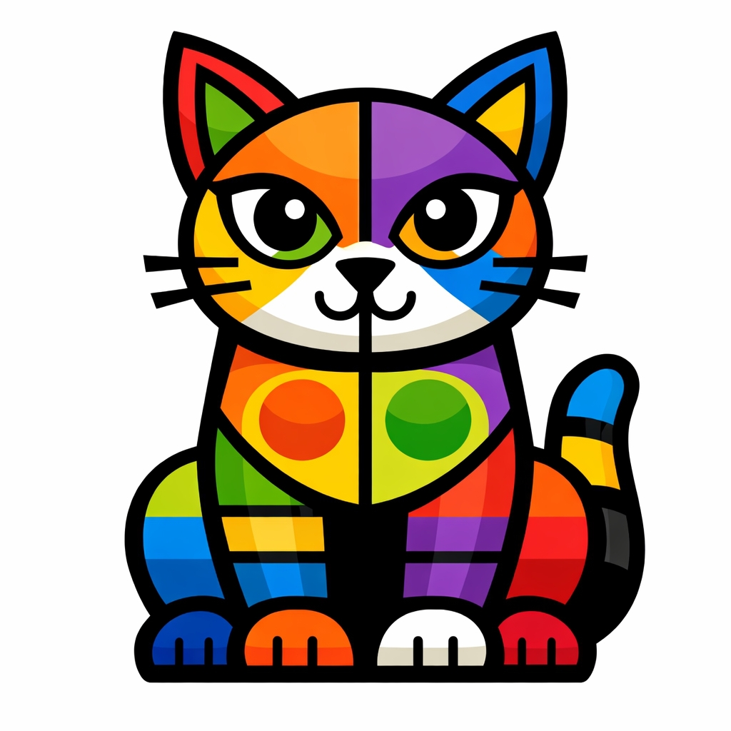 Colorful Geometric Cartoon Cat Illustration Sticker