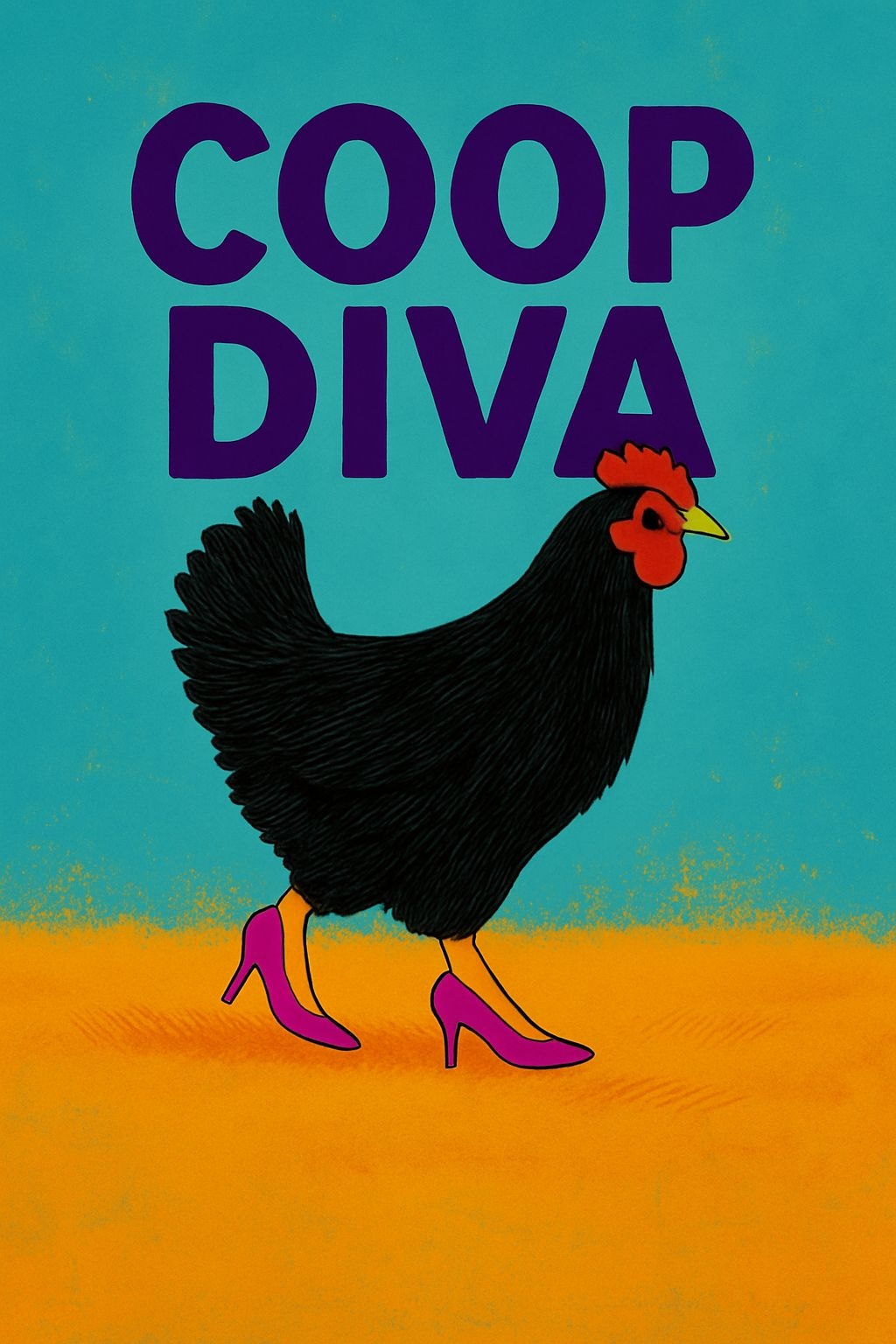 Playful Black Chicken in Magenta Heels 'Coop Diva' Poster