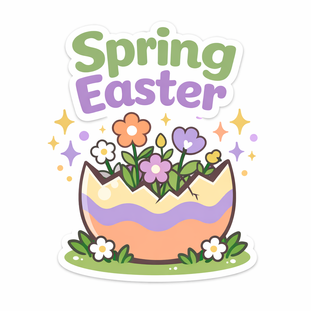 Vibrant Cartoon Spring Easter Eggshell Floral Illustration Sticker