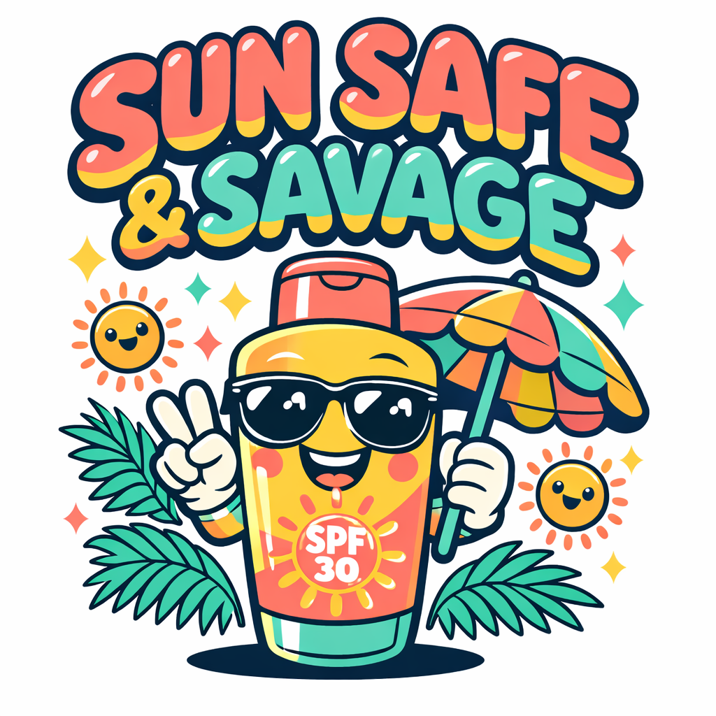 Vibrant Cartoon Sunblock Bottle with Fun Summer Theme T-shirt