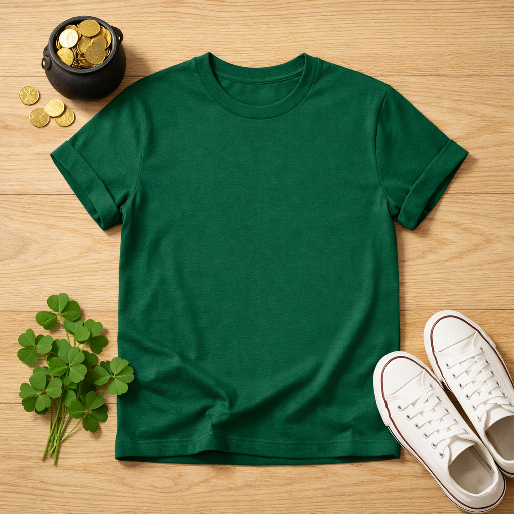 Vibrant Green T-Shirt with St. Patrick's Day Theme Mockup