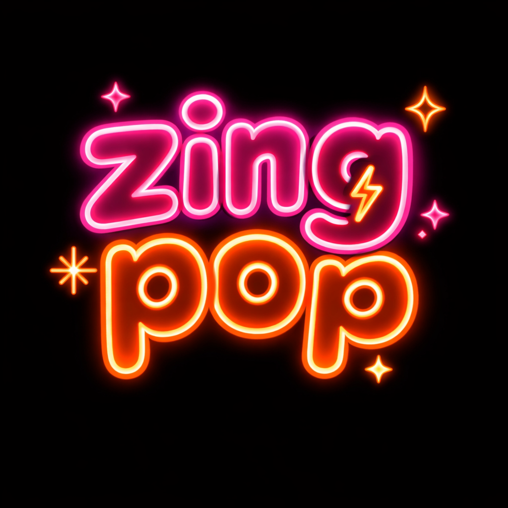 Vibrant Neon 'Zing Pop' Logo with Lightning Bolt Design