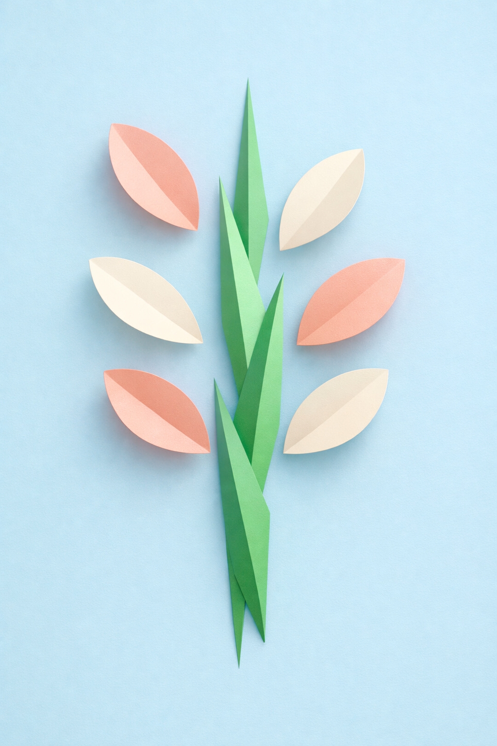 Minimalist Floral Paper Art Illustration on Light Blue Background Art