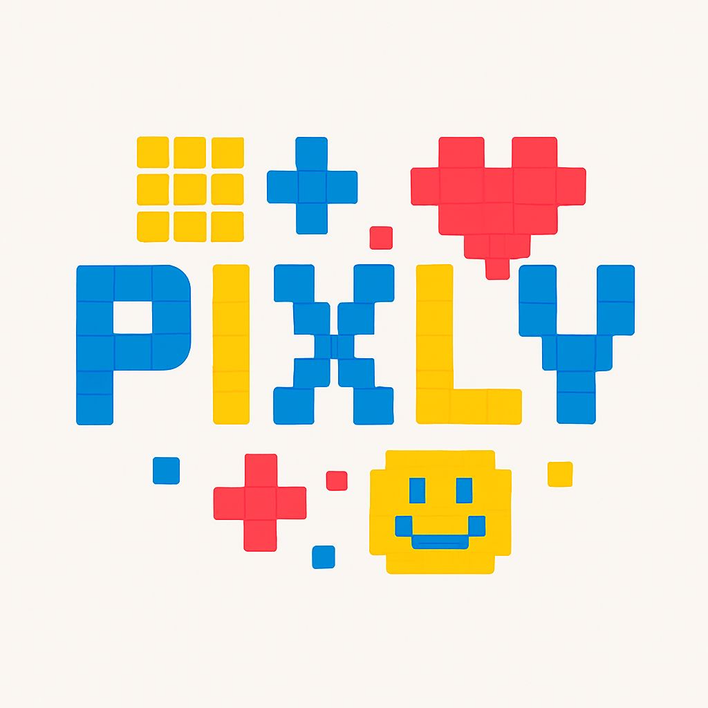 Vibrant Pixelated PIXLY Logo Design in Retro Gaming Style Logo