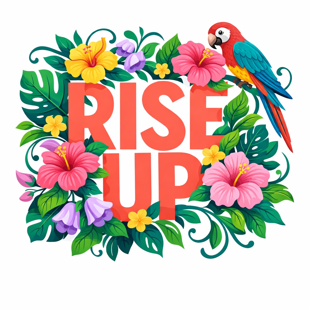 Vibrant Tropical 'Rise Up' Motivational Illustration T-Shirt