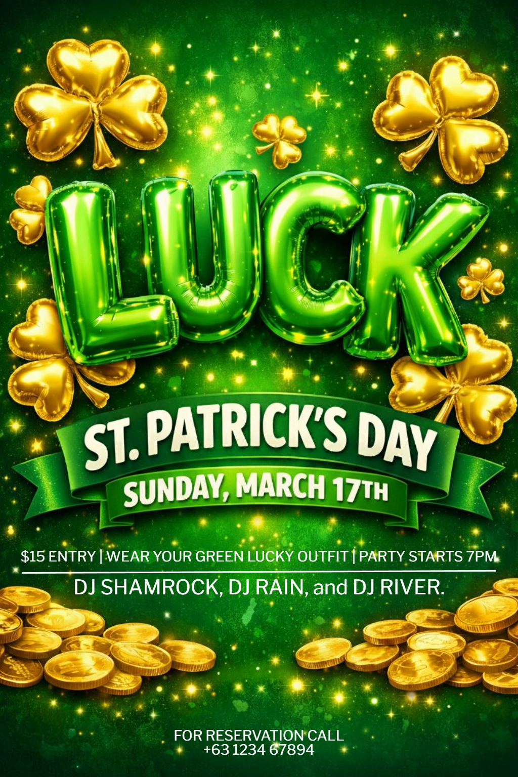 Vibrant St. Patrick's Day Party Flyer with 3D Chrome Luck Poster
