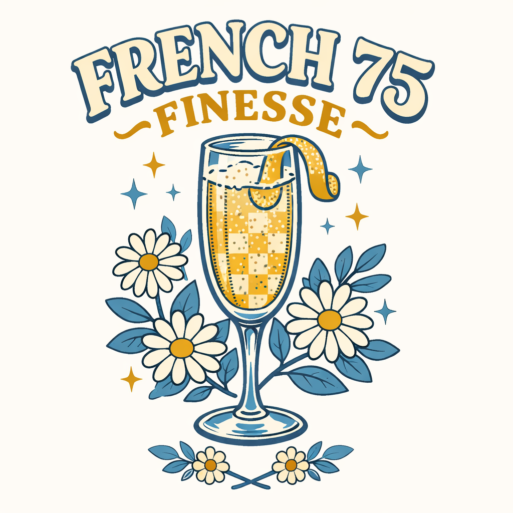 Vintage French 75 Champagne Flute with Daisies Illustration Sticker