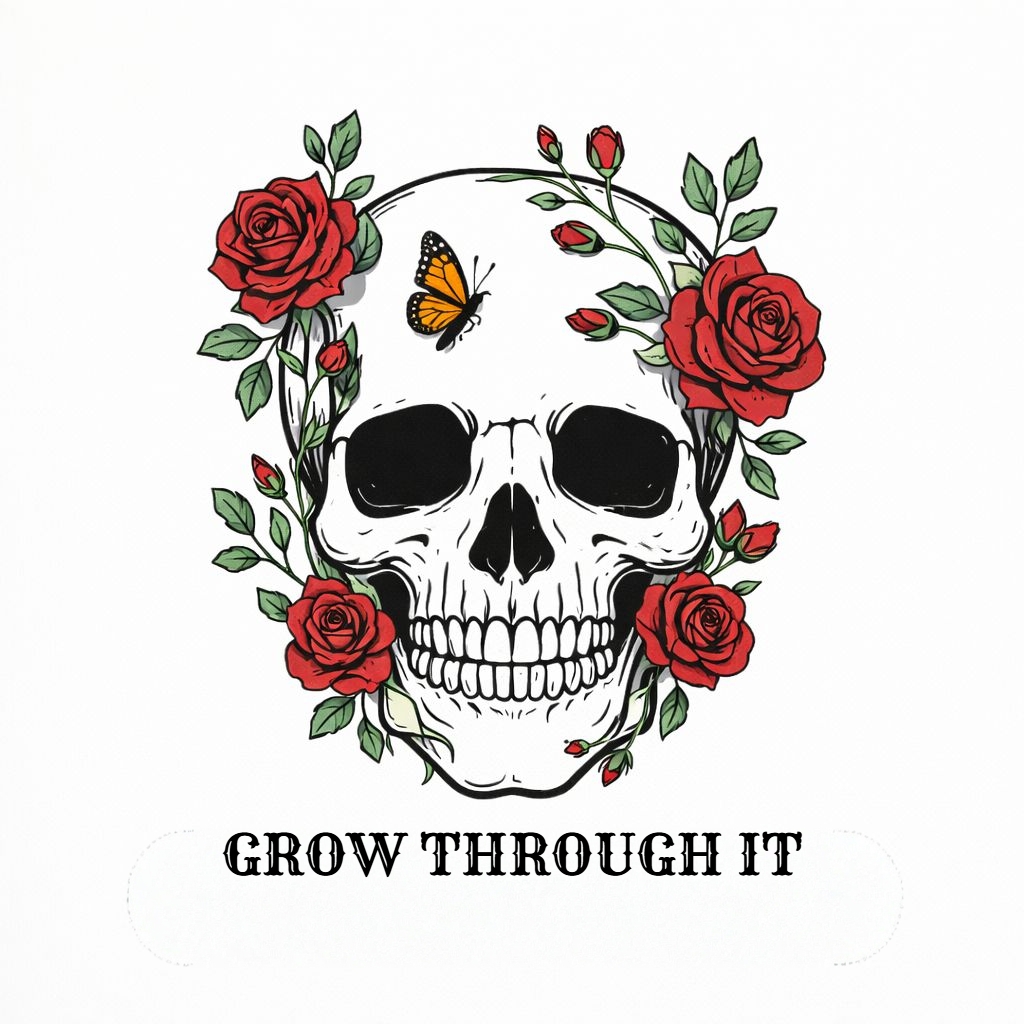 Skull and Roses with Butterfly 'Grow Through It' Mug Design