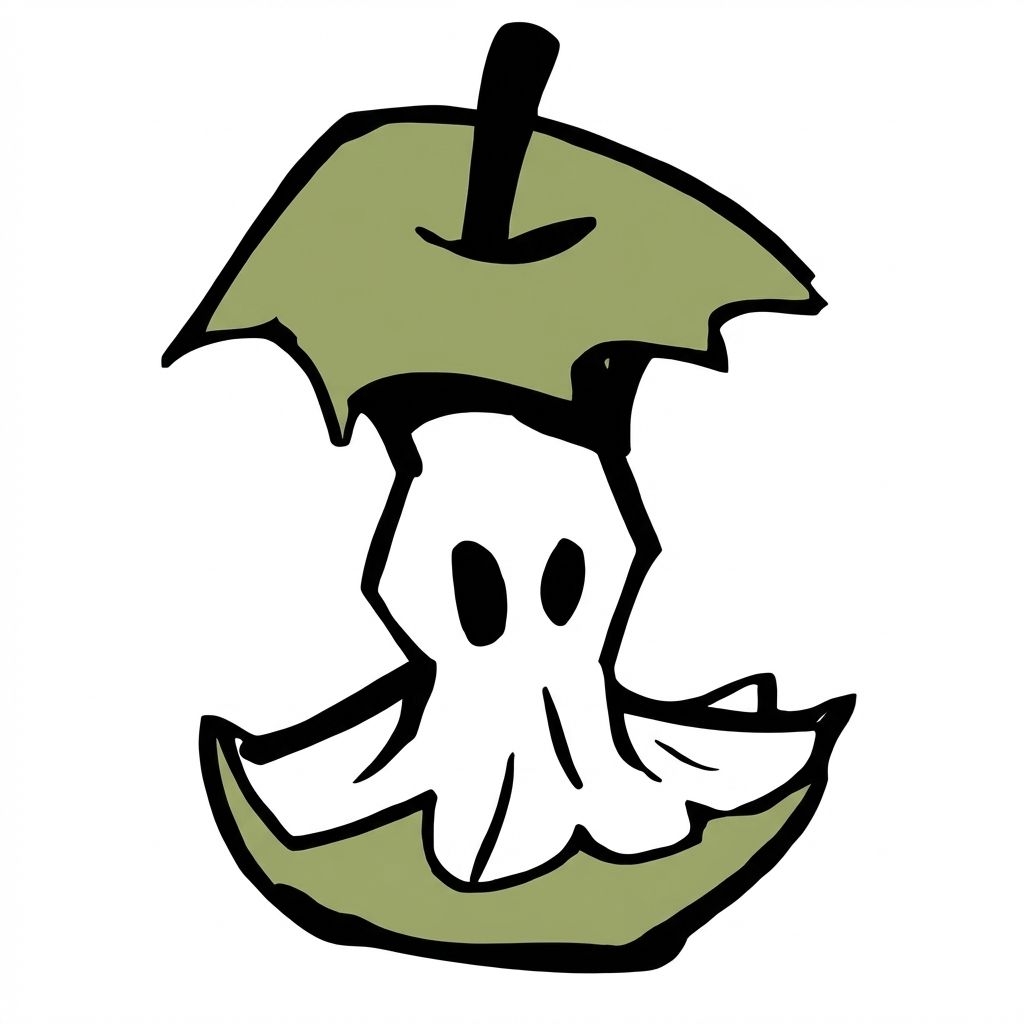 Broken Apple Cartoon Illustration with Ghostly Core Sticker