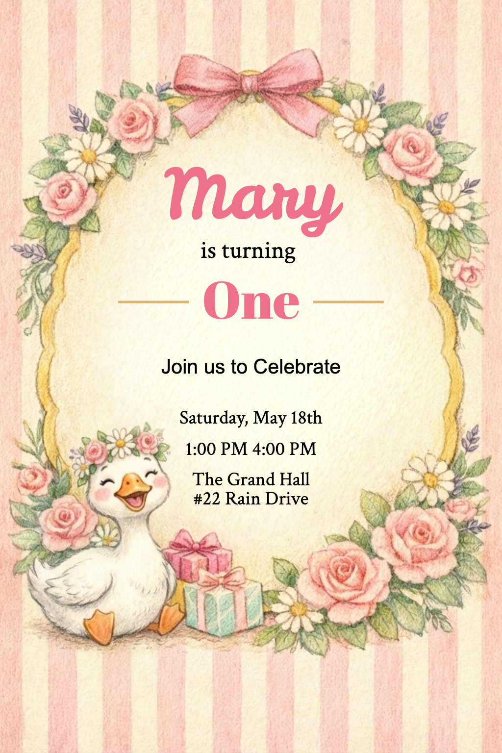 Whimsical Floral Birthday Invitation for Mary's First Celebration Card