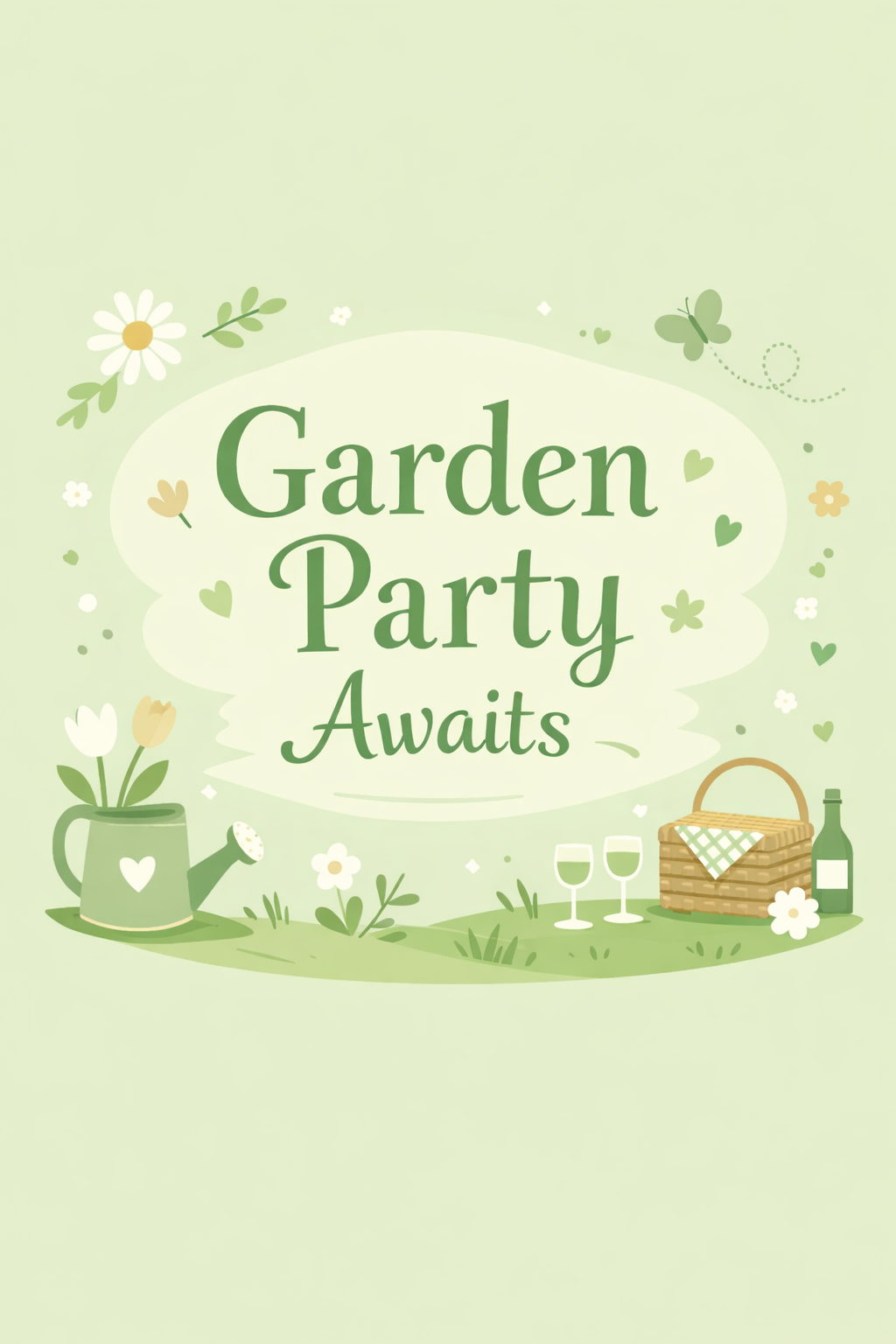 Whimsical Garden Party Invitation with Playful Illustrations Sticker