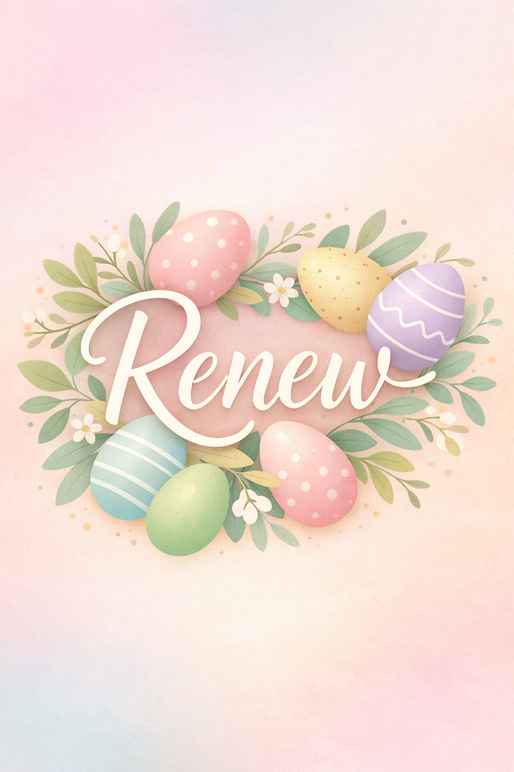 Whimsical Renew Easter Wreath Illustration with Pastel Background Poster