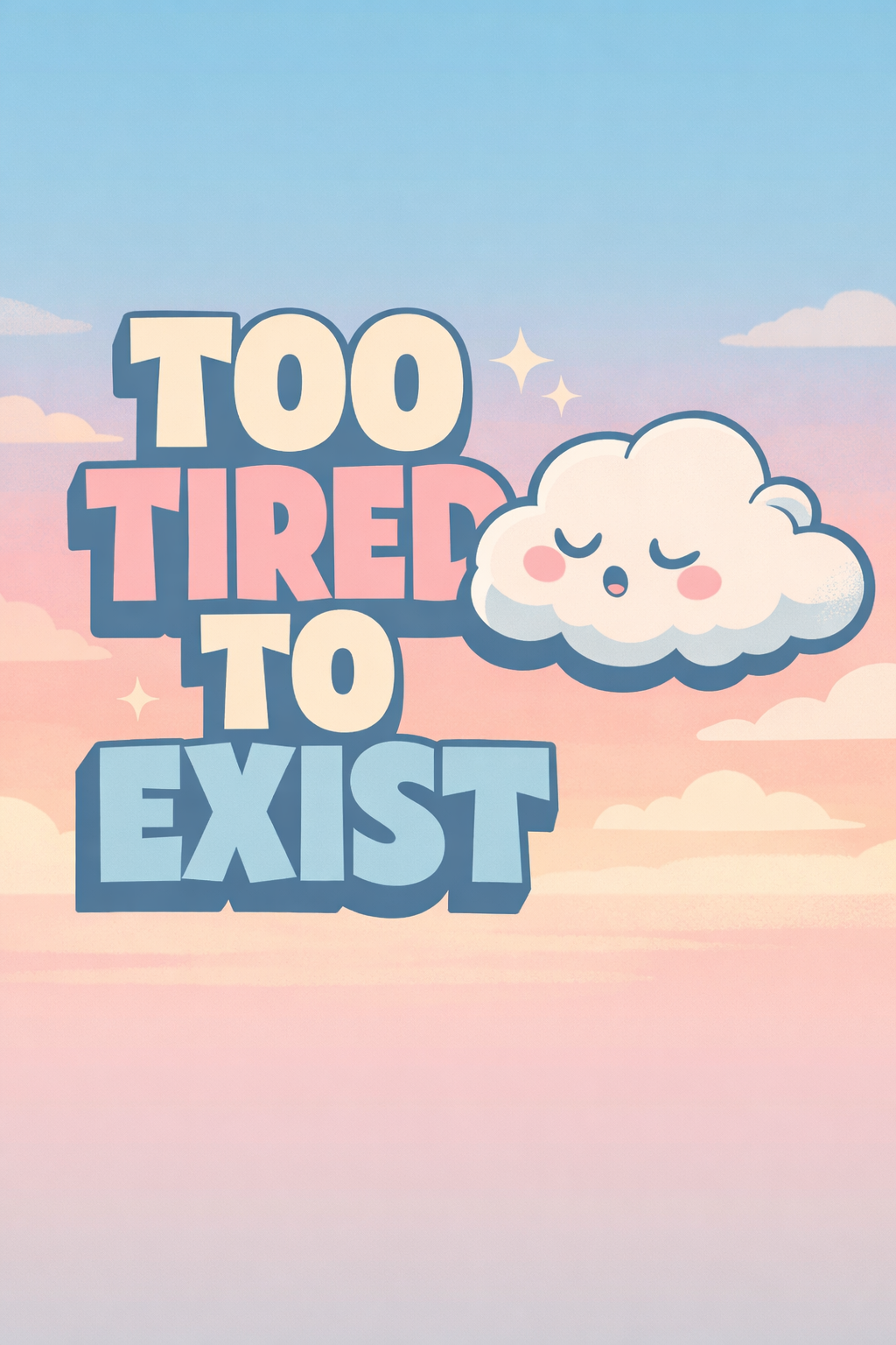 Whimsical 'Too Tired to Exist' Illustration with Cute Cloud Poster