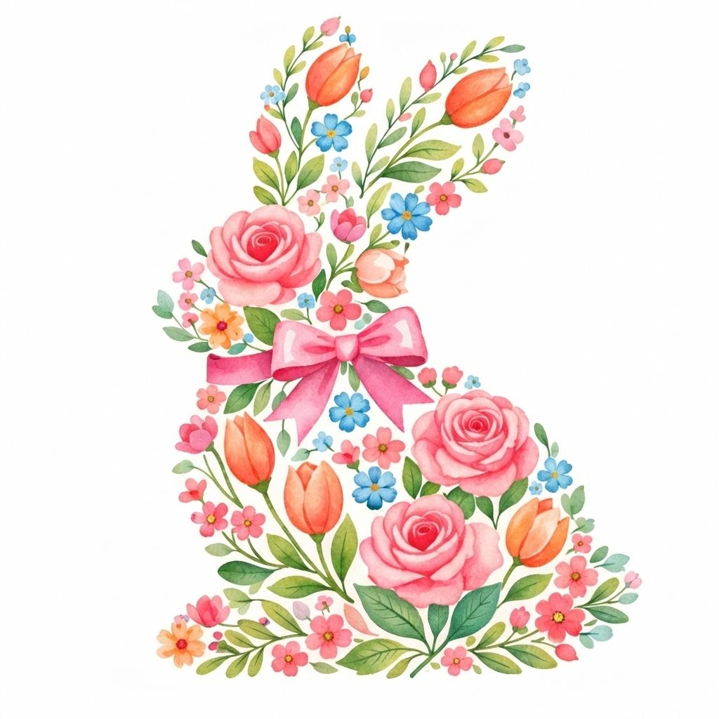 Whimsical Anthropomorphic Rabbit with Floral Motifs Art