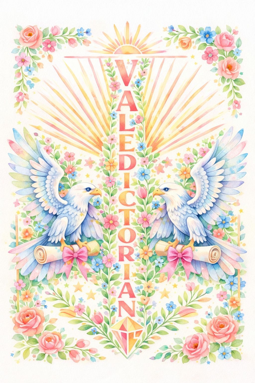 Vibrant Watercolor Eagles with Floral Designs and Valedictorian Theme Poster