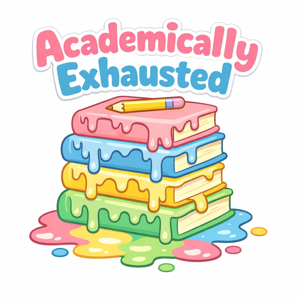 Vibrant Cartoon Melting Books with Pencil Sticker
