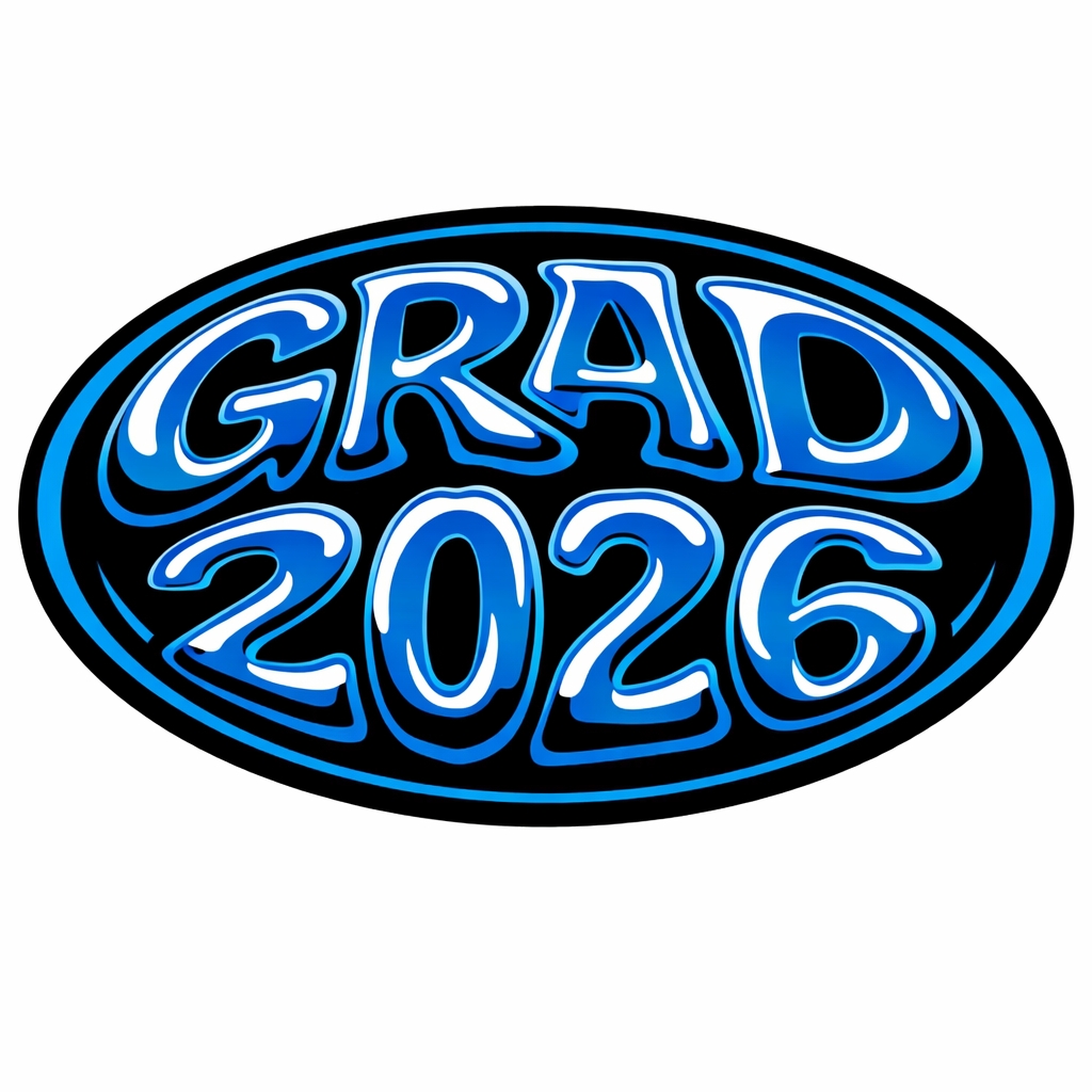 Modern Oval Grad 2026 Bold Design with Glossy Blue Text Sticker